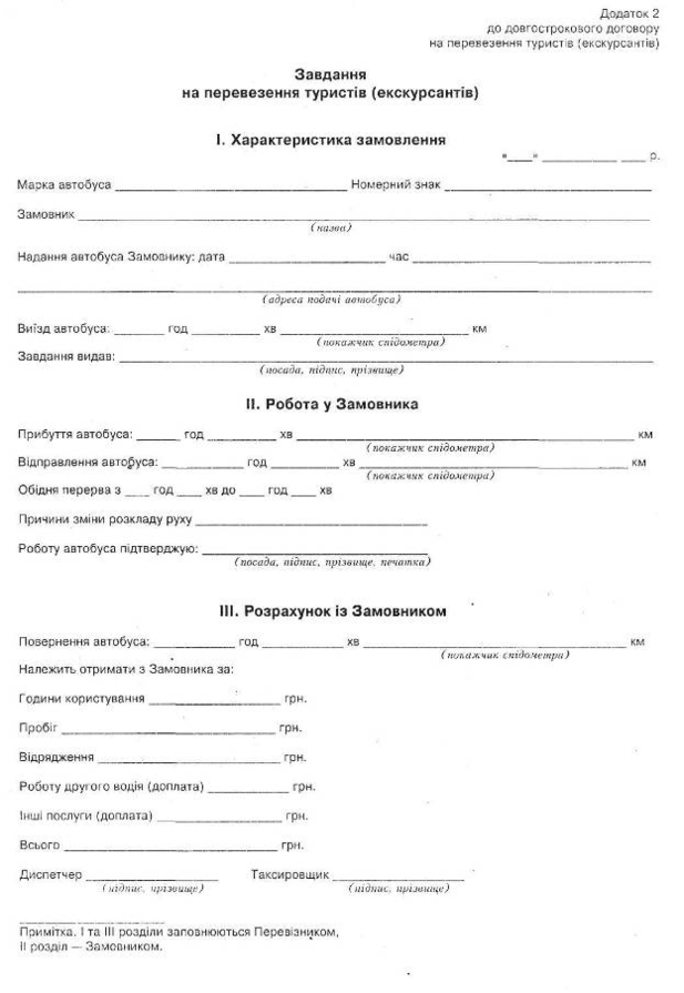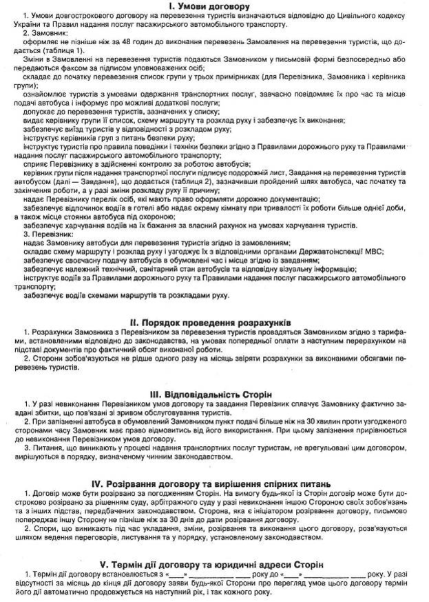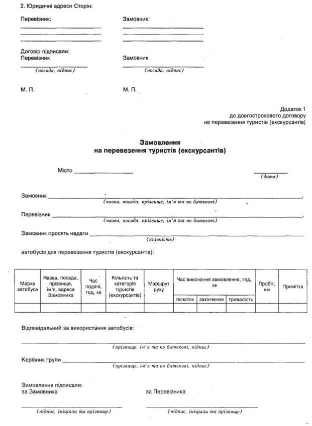 У додатках наведено приклад договору з автотранспортним підприємством на перевезення туристів (екскурсантів) (Додаток 7.1), договір турагентом(додаток 7.2), договір з туристом (додаток 7.3).