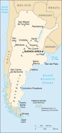 Аргентина ,офіційно Аргентинська Республіка — країна в Південній Америці, що межує на півдні і заході з Чилі, на північному заході з Болівією, на сході з Парагваєм, Бразилією, Уругваєм і омивається Атлантичним океаном.