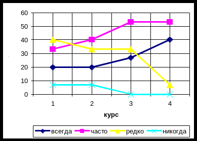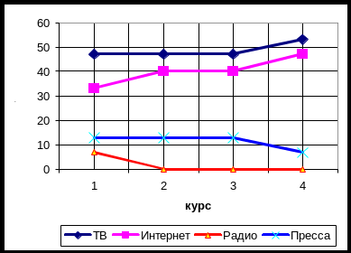 На основании полученных данных, возможно, построить график основных источников информации в зависимости от курса (см. рис. 2.1).