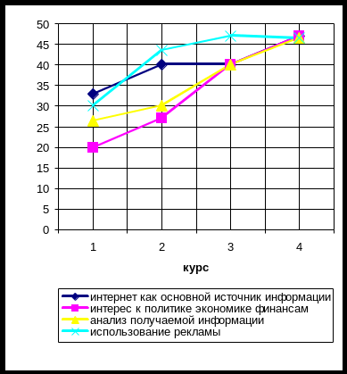На основании полученных данных, возможно, построить использования анализа информации рекламного характера в зависимости от курса (см. рис. 2.4)