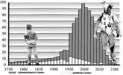 к ми справимося з інформаційним вибухом і демографічним переходом, поки-що неясно. Але втім, до чого це приведе, дещо сказати можна. Кількість пристарілих зросте, а число молоді впаде. Приблизно до 2050 року їхнє число зрівняється, а потім число стариків буде перевищувати чисельність молоді! Моральні потрясіння, руйнування державних зв’язків та інші “принадності” чекають нас через те, що проблеми будуть наростати в режимі ударної хвилі.