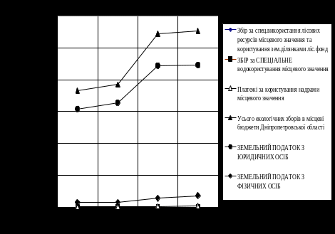 Рис.3.3. Динаміка складових зборів за використання природних ресурсів в місцевих бюджетах по Дніпропетровській області