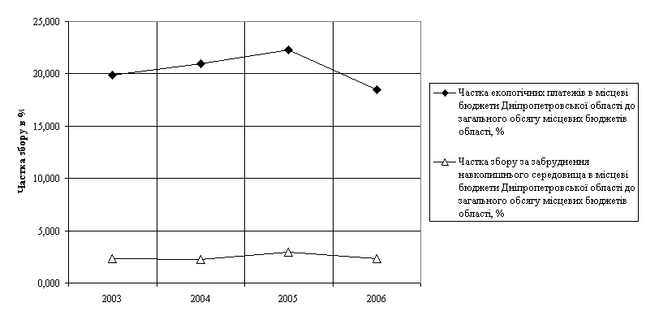 Рис.3.4. Динаміка частки збору за забруднення навколишнього