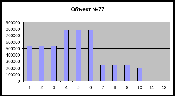 Построение графика основано на таблице 2 (распределение сметной стоимости по объектам, по месяцам и на основе количества месяцев заданных на строительство).