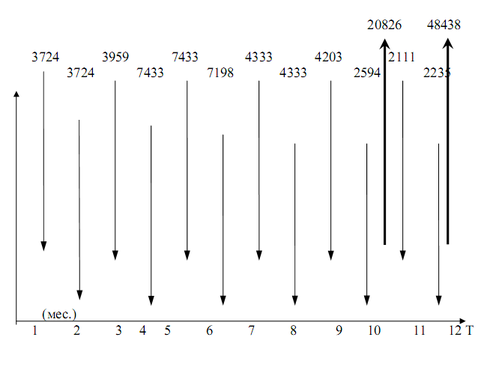 Основная задача этого графика – распределить инвестиционные затраты и денежные потоки во времени. Распределение во времени зависит от плана производства, котором работы связанны и инвестиционными затратами.