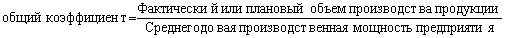 Под производственной мощностью предприятия подразумевается возможный выпуск продукции при достигнутом или намеченном уровне техники, технологии и организации производства. Степень использования производственных мощностей характеризуется следующими коэффициентами: