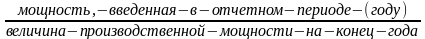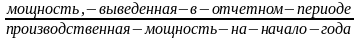 где ПМс — среднегодовая производственная мощность; ПМiввод. — вводимая i-я производственная мощность; tiд — количество месяцев в году, в течение которых будет действовать i-я мощность; ПМjвыв — выводимая j-я производственная мощность; tjб - количество месяцев в году, в течение которых не будет действовать j-я выводимая мощность; 12 — количество месяцев в году.