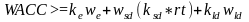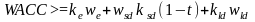 Можно предложить следующую формулу определения средневзвешенной стоимости капитала WACC (если приравнять требуемую доходность, то есть ставку дисконта к WACC).