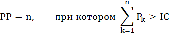 Этот метод – один из самых простых и широко распространен в мировой учетно-аналитической практике, не предполагает временной упорядоченности денежных поступлений. Алгоритм расчета срока окупаемости (РР) зависит от равномерности распределения прогнозируемых доходов от инвестиции. Если доход распределен по годам равномерно, то срок окупаемости рассчитывается делением единовременных затрат на величину годового дохода, обусловленного ими. При получении дробного числа оно округляется в сторону увеличения до ближайшего целого. Если прибыль распределена, то срок окупаемости рассчитывается прямым подсчетом числа лет, в течение которых инвестиция будет погашена кумулятивным доходом. Общая формула расчета показателя РР имеет вид: