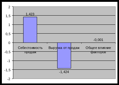 Общее влияние факторов: 1,423–1,424 = -0,001.