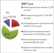 Проведем структурный анализ внеоборотных активов, оборотных активов, долгосрочных и краткосрочных обязательств предприятия, а также анализ собственного капитала. Прибегнем к статистике и применим метод наглядности. Для получения точных финансовых показателей обратимся к бухгалтерской документации – Бухгалтерскому Балансу (приложение 1) и Отчету о прибылях и убытках (приложение 2) за 2006 – 2007 годы.