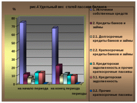 Трудно реализуемые активы, наибольший удельный вес которых составляют основные и прочие внеоборотные средства (А4=F-F5) – А4н = 13 963 600 – 1 123 573 = 12 840 027, А4к = 15 126 634 – 1 449 514 = =13 677 120.