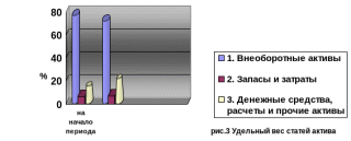 На основании сравнительного баланса – нетто можно судить в целом о положительном росте показателей ФХД ОАО «Новосибирскэнерго» на 15,72%. Как положительные факторы роста можно отметить снижение удельного веса внеоборотных активов, за счет выбытия изношенного оборудования, увеличение доли денежных средств ( Тпр = 66,95%), снижение кредиторской задолженности и стремление организации улучшить показатели за счет использования заемных средств как в краткосрочном так и в долгосрочном периодах. Некоторый отрицательный фон вносит увеличение дебиторской задолженности в краткосрочном периоде.