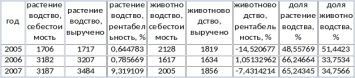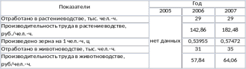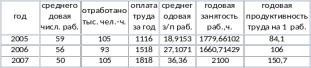 По данным табл. 3 и 4, произошло сокращение среднегодовой численности работников на 15%, а также увеличение затрат труда в животноводстве, вследствие чего годовая занятость работников возросла на 18%, а среднегодовая з/п на 92,2%. В то же время, производительность труда в растениеводстве в 2007 г. превышала производительность труда в животноводстве в 2,85 раза. Эффективность труда в производстве зерна возросла на 6,5%, а годовая продуктивность труда на 79,2%.