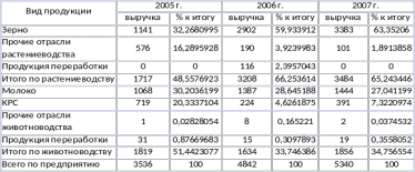Таким образом, анализируемое предприятие специализируется на производстве продукции растениеводства с преобладающей долей зерна. Объемы реализации продукции растениеводства возросли за счет зерновых культур, а объемы реализации продукции животноводства сократились за счет сокращения убыточного производства КРС. В животноводстве преобладает производство молока.