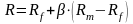 Модель САМР, позволяющая оценить требуемую доходность акций компании R, соответствующую уровню риска, определяемого β-коэффициентом, может быть представлена в виде следующей формулы: