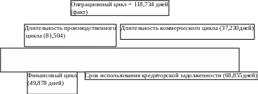 Оборотные средства совершают 1 полный оборот (операционный цикл) в течении 118,734 дней. Предприятие заинтересовано в ускорении оборачиваемости оборотных средств, тем самым оно сокращает длительность коммерческого цикла и производственного цикла.