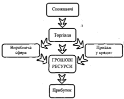 Рис.1.1. Загальна схема руху грошових потоків у підприємницькій діяльності