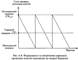 Рис.3.1. Формування та витрачання залишків грошових коштів відповідно до моделі Баумоля.