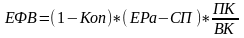 де ЕФВ — ефект фінансового важеля (тобто нарощення рентабельності власного капіталу за рахунок використання позикового капіталу);