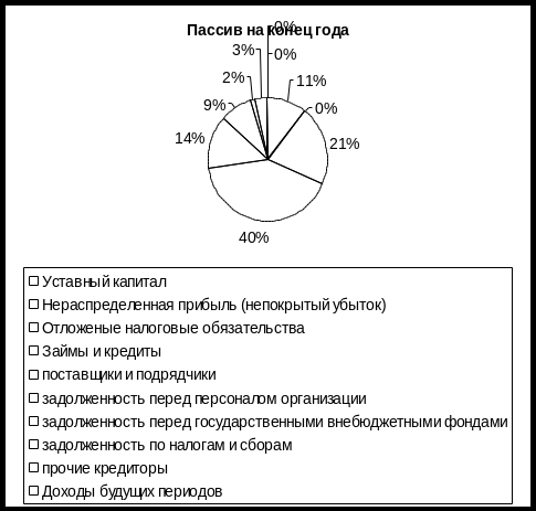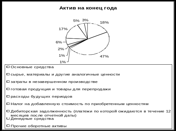Основную часть актива баланса составляют оборонные средства (запасы) на начало года они составляли 65,01%, а в отчетном году – 51,60% - это необходимо потому что организация занимается выпуском запасных деталей и ремонтом оборудования.