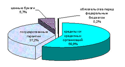 В структуре государственного долга наибольший удельный вес занимают кредиты, полученные от кредитных организаций 56,9% (2100 млн. рублей). На долю государственных гарантий Кировской области приходится 37,2% (1374,6 млн. рублей), государственных ценных бумаг Кировской области – 5,7% (210 млн. рублей), обязательств перед федеральным бюджетом – 0,2% (5,8 млн. рублей) от общего объема государственного долга.