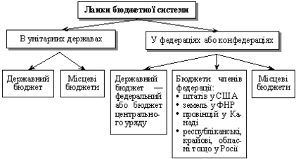 Кожна держава має свою бюджетну систему і встановлює принципи її побудови, структури, взаємозв’язок об’єднаних у ній складових, тобто бюджетний устрій. Організація бюджетної системи, або бюджетного устрою, визначається державним устроєм країни. Залежно від організації структури розрізняються унітарні (єдині), федеративні та конфедеративні держави.