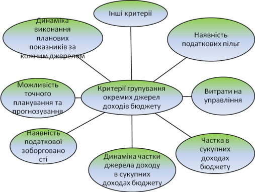 Рис. 2. Критерії групування доходів бюджету з метою управління
