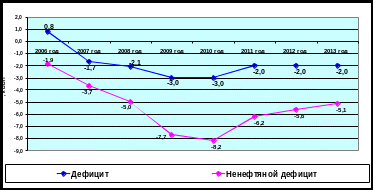 Параметры дефицита государственного бюджета определены с учетом необходимости обеспечения сбалансированности бюджета исходя из прогнозных объемов ненефтяного дефицита.