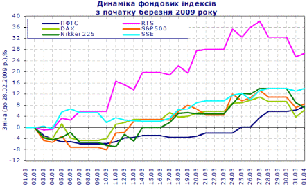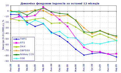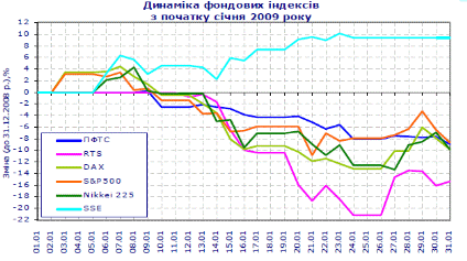 Рис.2.2. Динаміка фондових індексів за січень 2009 р.