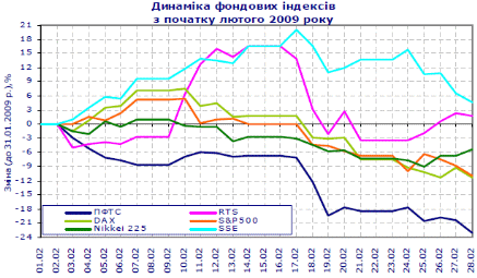 Рис.2.4. Динаміка фондових індексів за лютий 2009 р.