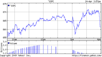 Причиною спаду став звіт про стрес-тест американських банків, що показав великі збитки за кредитами, які повинні в майбутнєму тільки збільшуватись. Ринок також застив в очікуванні початку звітів американських компаній за 1Кв.2009 г.