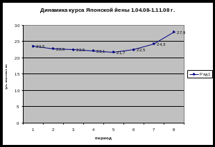 Если анализировать каждую валюту в отдельности, то рост японской йены вызван перетоком спекулятивного капитала. Многие инвестиционные банки пытаются спасти оставшиеся средства от обесценивания. Высокая инфляция и снижение процентных ставок во всех развитых странах, в том числе в США и Швейцарии, сделали нецелесообразным хранение средств в этих валютах. Банк Японии, единственный, среди развитых стран, сохранил процентные ставки на уровне 0.5%, что и вызвало значительный рост японской валюты. Инвесторы посчитали йену – валютой убежищем и стали активно переводить деньги.