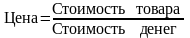 Количественная оценка товара в деньгах называется ценой. Она определяется общественно необходимыми затратами труда на его производство и реализацию. В основе цен и их движения – закон стоимости. Цена товара формируется на рынке и при равенстве спроса и предложения на товары зависит от стоимости товара и стоимости денег. При функционировании действительных денег