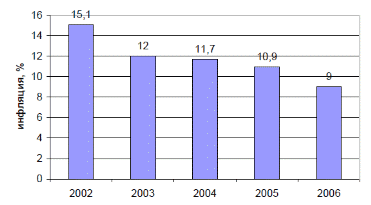 Рисунок 5. Динамика инфляции за период 2002–2006 гг.