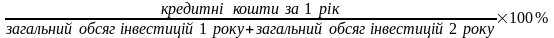 Доля кредитних коштів розраховується як: