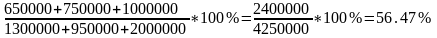 Розрахунок: Частина власних коштів під 12% у загальному обсязі інвестицій складає: (650000/1300000)*100%=50%