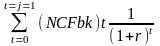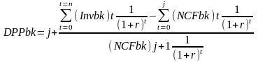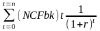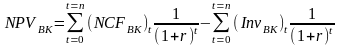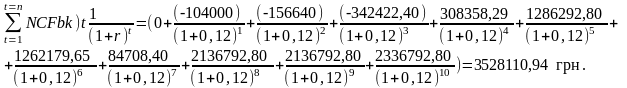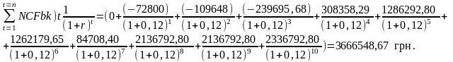 (NCFbk)t - чистий грошовий потік в році t, визначений без урахування здійснених вкладень власного капіталу, але з відсотковими платежами та виплатою основної частини боргу;