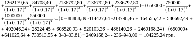 Другий варіант: Якщо проект ізольовано від загальної господарської діяльності, а також, якщо не включається у витрати на виробництво продукції виплата процентів у 1-9 роках: