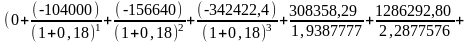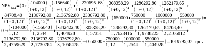 Для того, щоб як найточніше розрахувати показник IRRbk необхідно (для схеми власного капіталу) розрахувати ще раз NPVbk, але вже за ставкою r1 = 18% (і r1 = 17%) щоб інтервал (r1; r2) дорівнює 1%. За r2 візьмемо 19%, 18%.