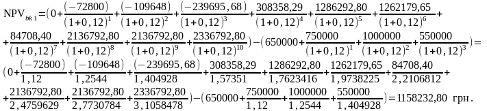 Так як значення РІbk більше 1, то інвестиційний проект за правилом приймається.