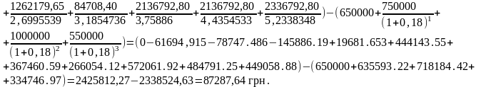 Додатково розрахуємо «індекс дохідності інвестиційного проекту » (ILbk ) за формулою.