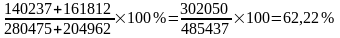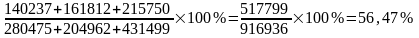 (140237/280475)*100%=50%