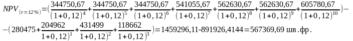 Для розрахунку показника NPV використаємо дисконтну ставку, яка дорівнює 12%.