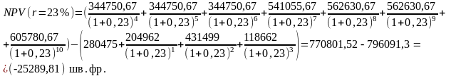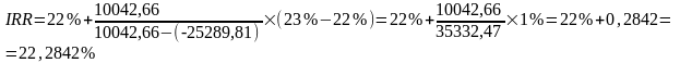 Перед тим як розрахувати IRR знайдемо спочатку два значення ставки дисконтування r1 r2, щоб в інтервалі (r1; r2) функція