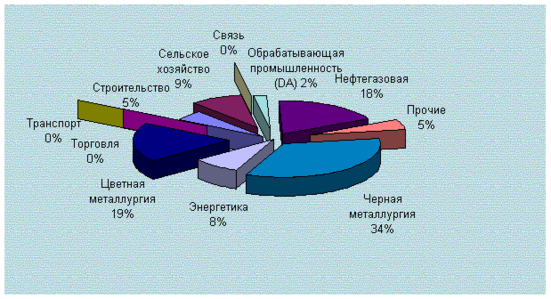 В отраслевой структуре инвестиций основную долю занимают отрасли черной и цветной металлургия, нефтяная и газовая промышленности по прежнему находится на одном из первых мест по уровню привлекаемых инвестиций. А такие отрасли как строительство и обрабатывающая промышленность получают наименьшее количество иностранных инвестиций. Такие показатели по двум последним отраслям промышленности значительно не меняются последние 5 лет. Инвесторы по-прежнему неохотно вкладывают капитал в эти отрасли.