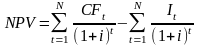 Если проект предполагает не разовую инвестицию, а последовательное инвестирование финансовых ресурсов в течение m лет, то возможны два варианта расчета. Согласно первому варианту инвестиция рассматривается как элемент совокупного денежного потока, т.е. чистый денежный поток i-го года