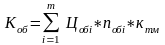 где Цобi - средняя стоимость единицы i-го вида оборудования, руб.;