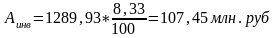 | Производственный инвентарь | 1289,93 | 6,94 | 8,33 | 107,45 | 7,48 |