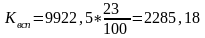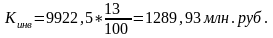 Кзд=560*2587,5+833,8*1164,38 = 2419,86 тыс. руб.